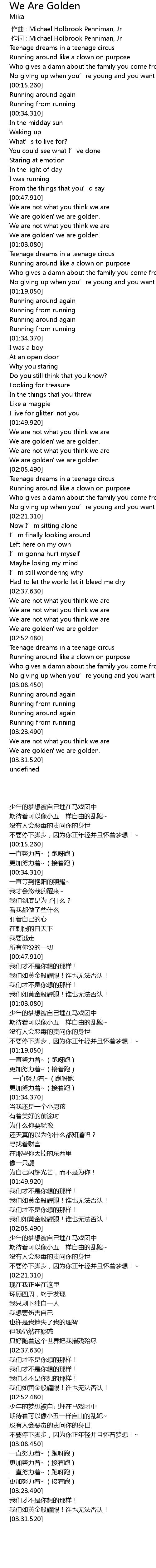 | [02:48.800] | We are golden' we are golden |