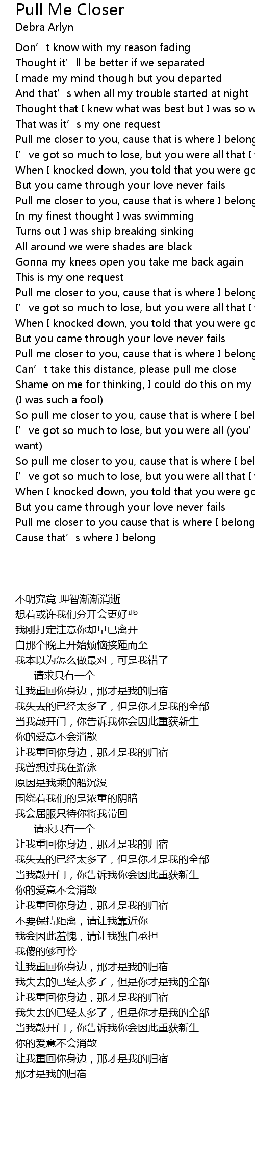 | [01:35.000] | Pull me closer to you, cause that is where I belong |