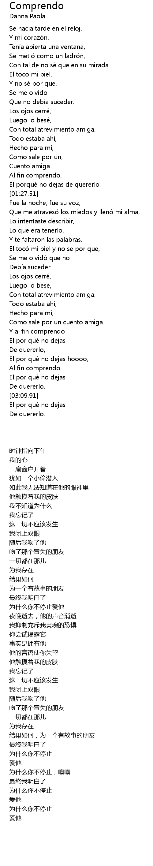 | [01:21.94] | El porqué no dejas de quererlo. |