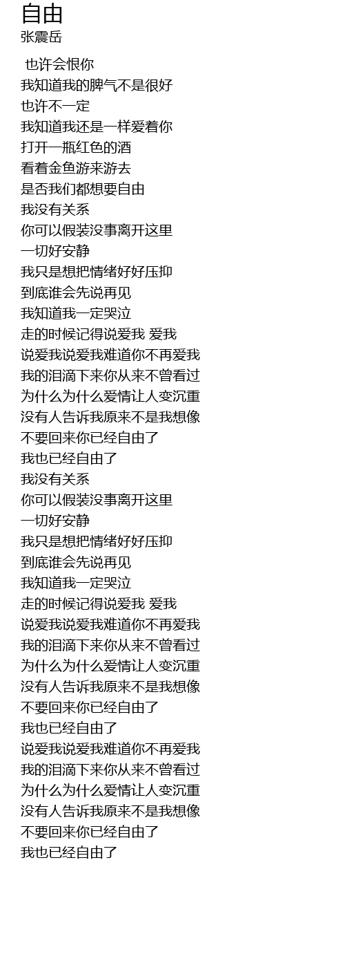 | [03:01.790] | wǒ yě yǐ jīng zì yóu le |