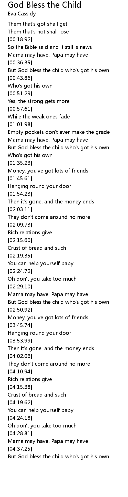 But God bless the child who's got his own |