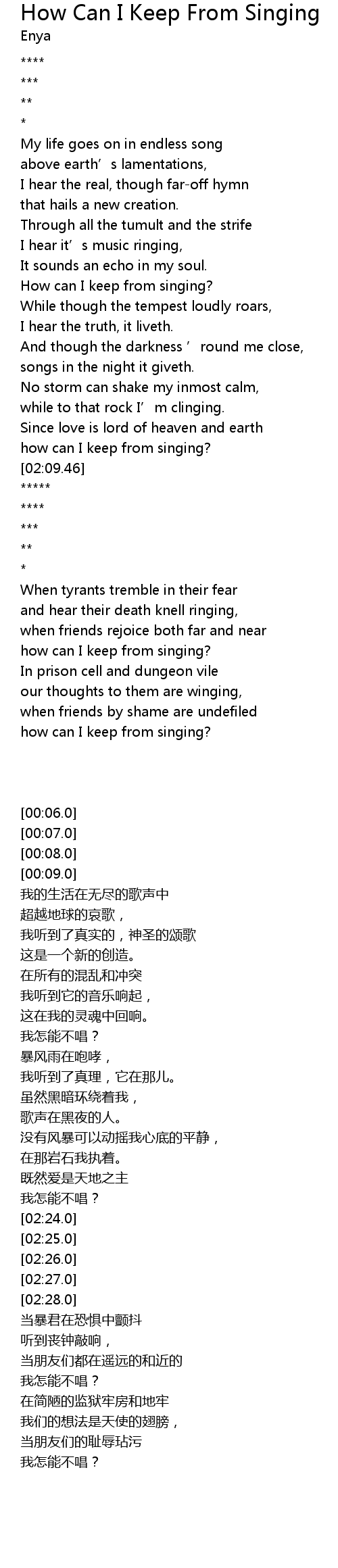 | [02:51.85] | how can I keep from singing? |