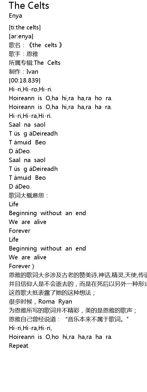 | [00:13.396] | 所属专辑:The Celts |