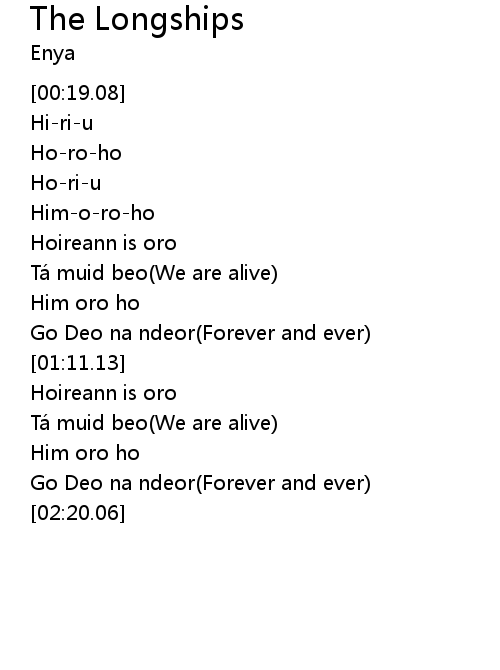 | [01:03.76] | Go Deo na ndeor(Forever and ever) |