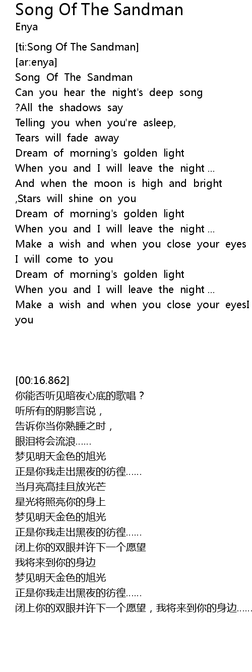 [ti:Song Of The Sandman] |