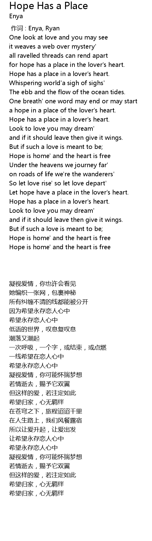 | [02:53.280] | Let hope have a place in the lover' s heart. |