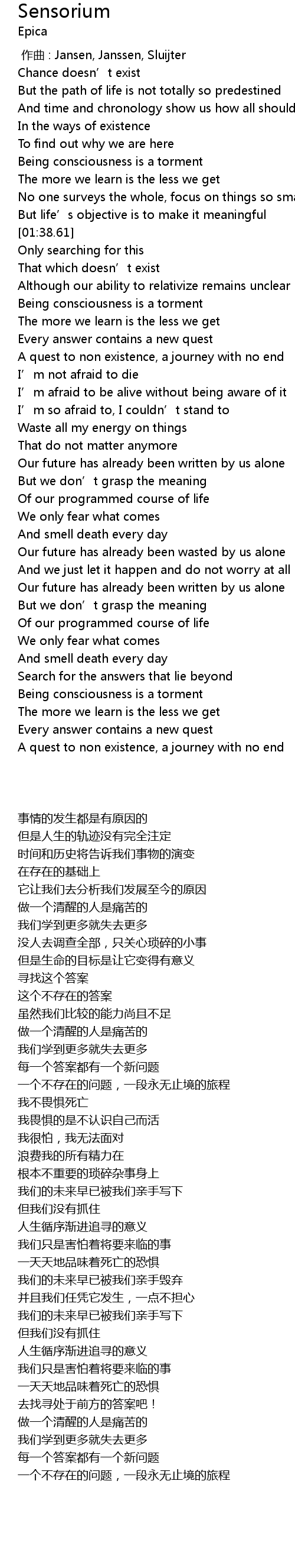 | [02:23.22] | A quest to non existence, a journey with no end |