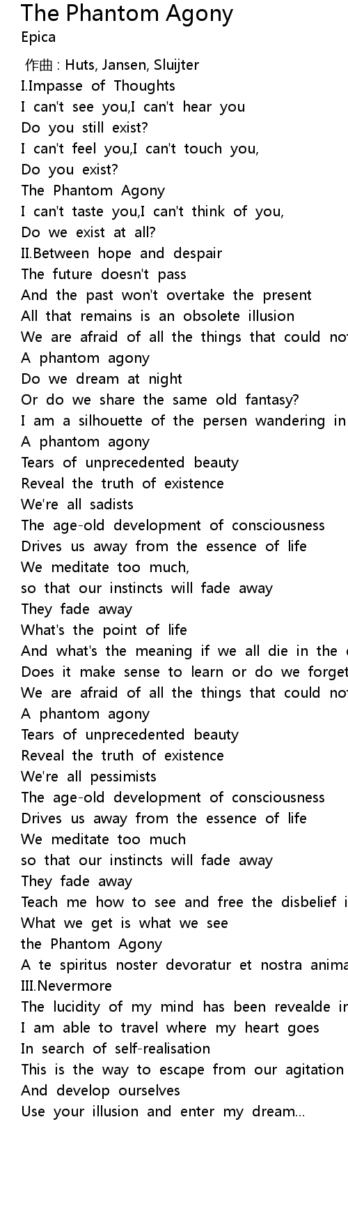 | [00:37.20] | The Phantom Agony |