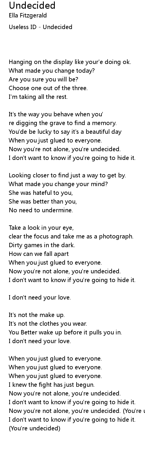 Now you're not alone, you're undecided. (You're undecided) |