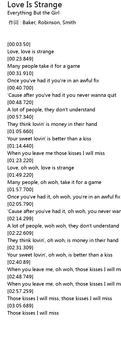 | [02:41.99] | When you leave me, oh woh, those kisses I will miss |