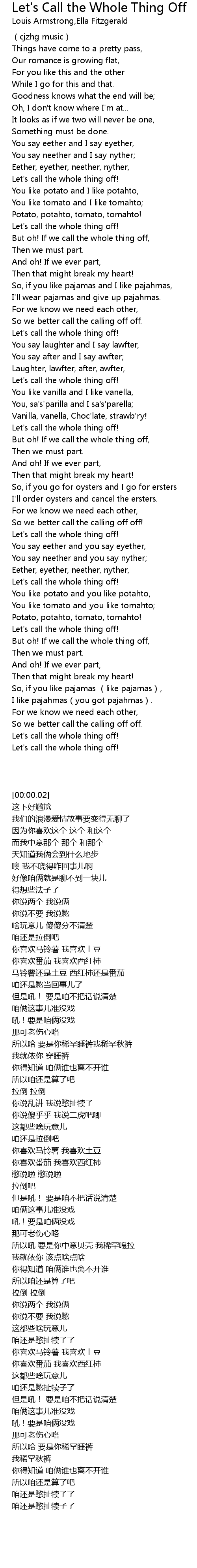 | [02:15.41] | But oh! If we call the whole thing off, |