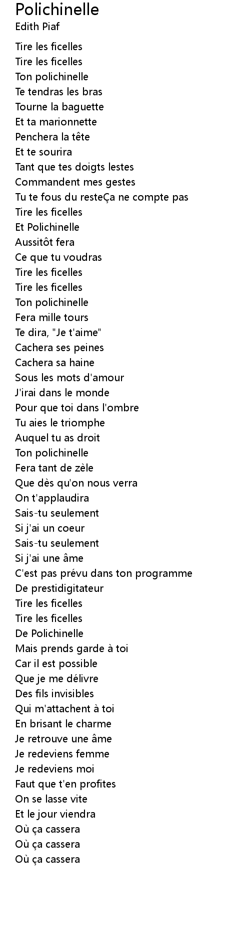| Album | The Voice of the Sparrow: The Very Best of Edith Piaf |