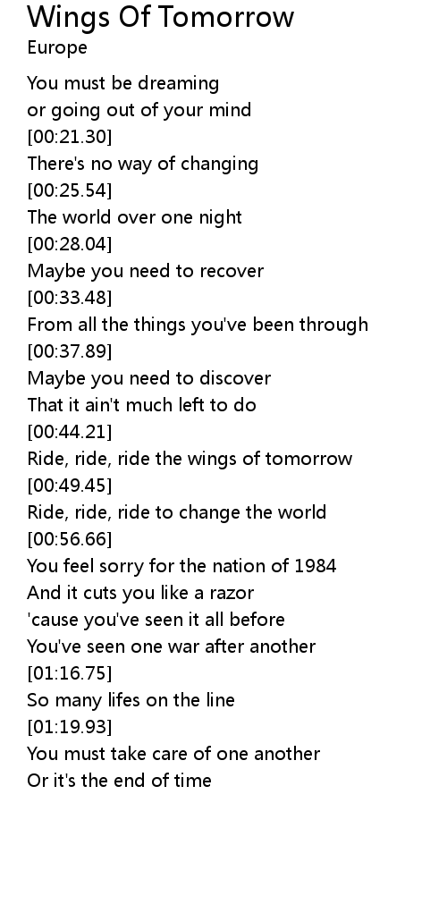 Ride, ride, ride the wings of tomorrow |