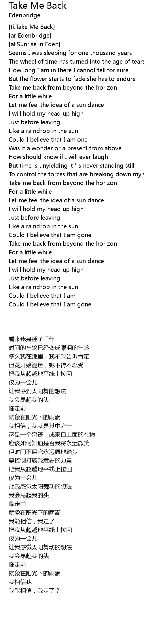 | [ti:Take Me Back] | |