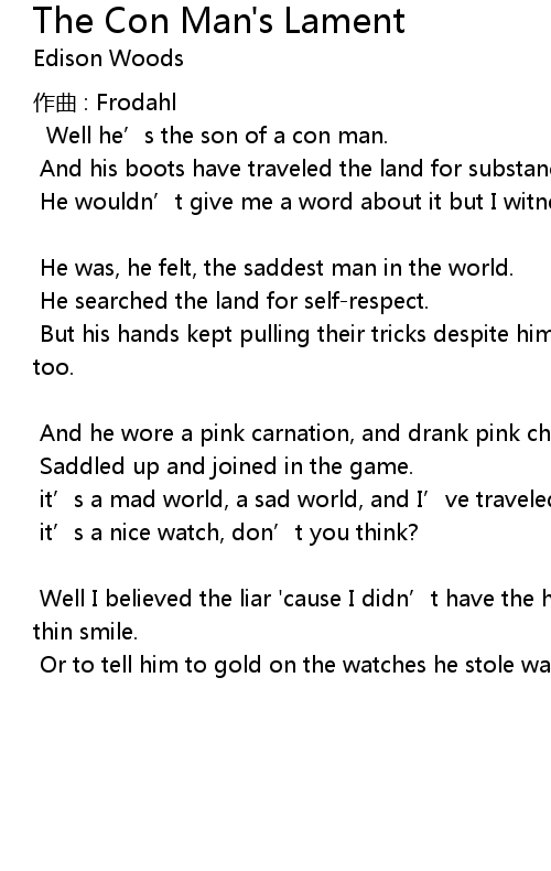 | Song | The Con Man's Lament |