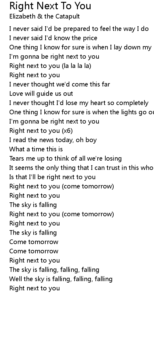 Is that I'll be right next to you |