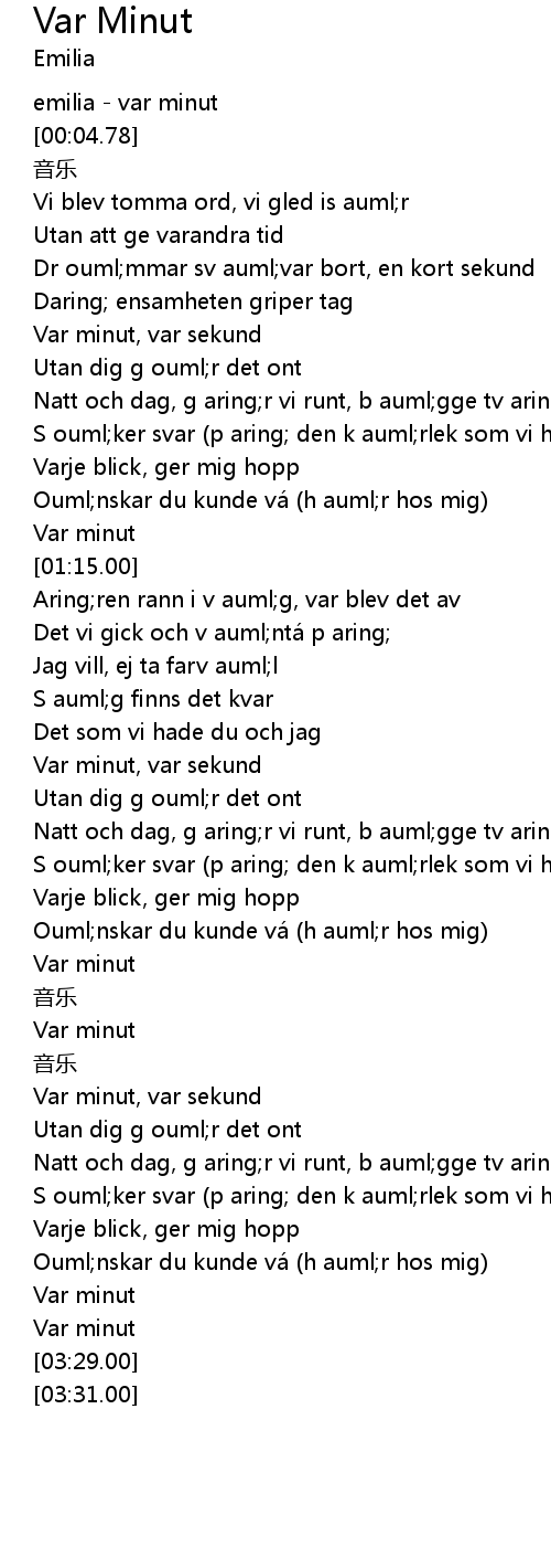 | [00:01.23] | emilia var minut |