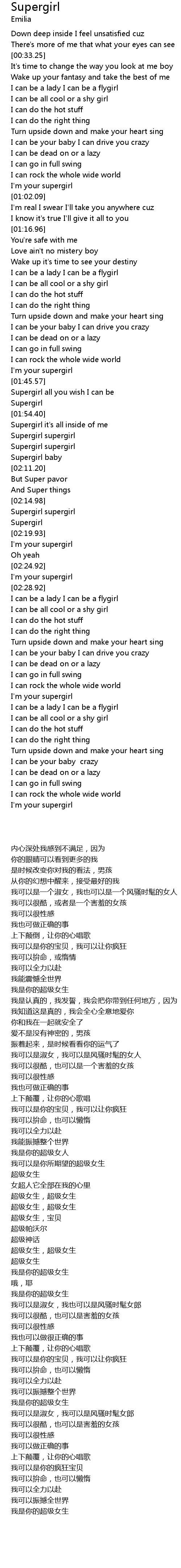 | [01:46.43] | Supergirl all you wish I can be |