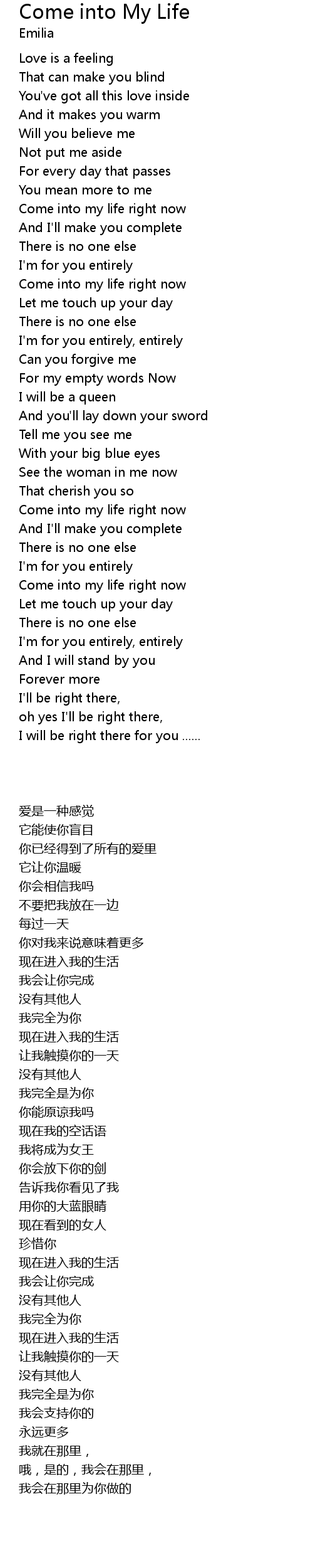 Come into my life right now |