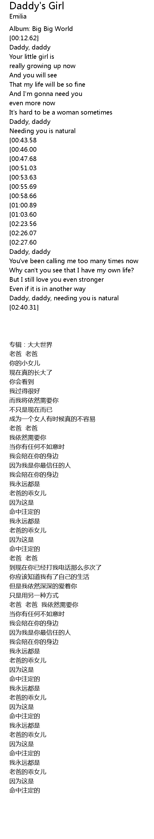 Daddy, daddy, needing you is natural |