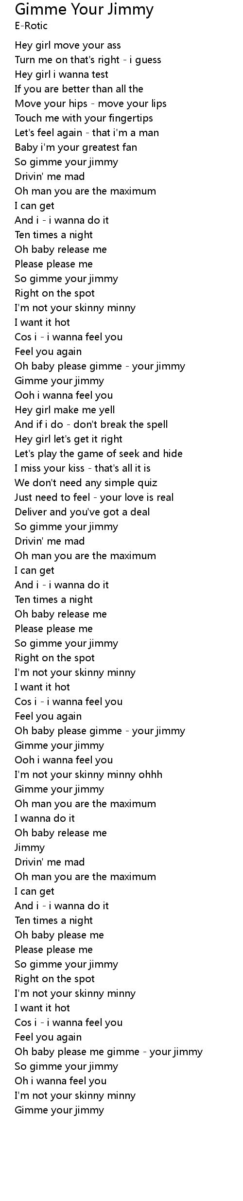 | Oh baby please me gimme - your jimmy | |