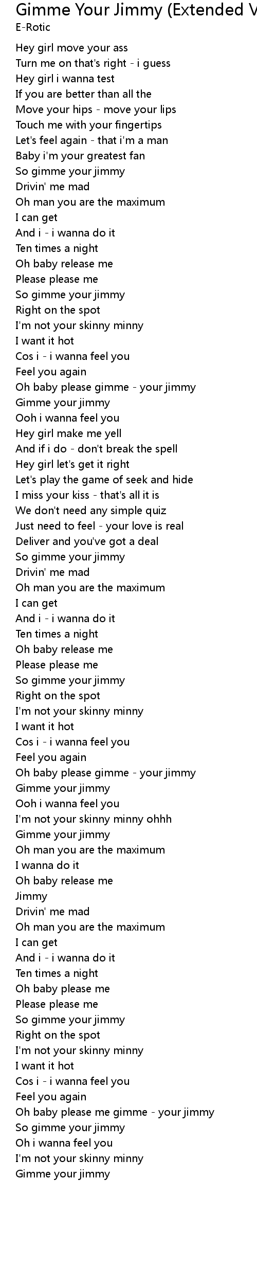 | Oh baby please me gimme - your jimmy | |