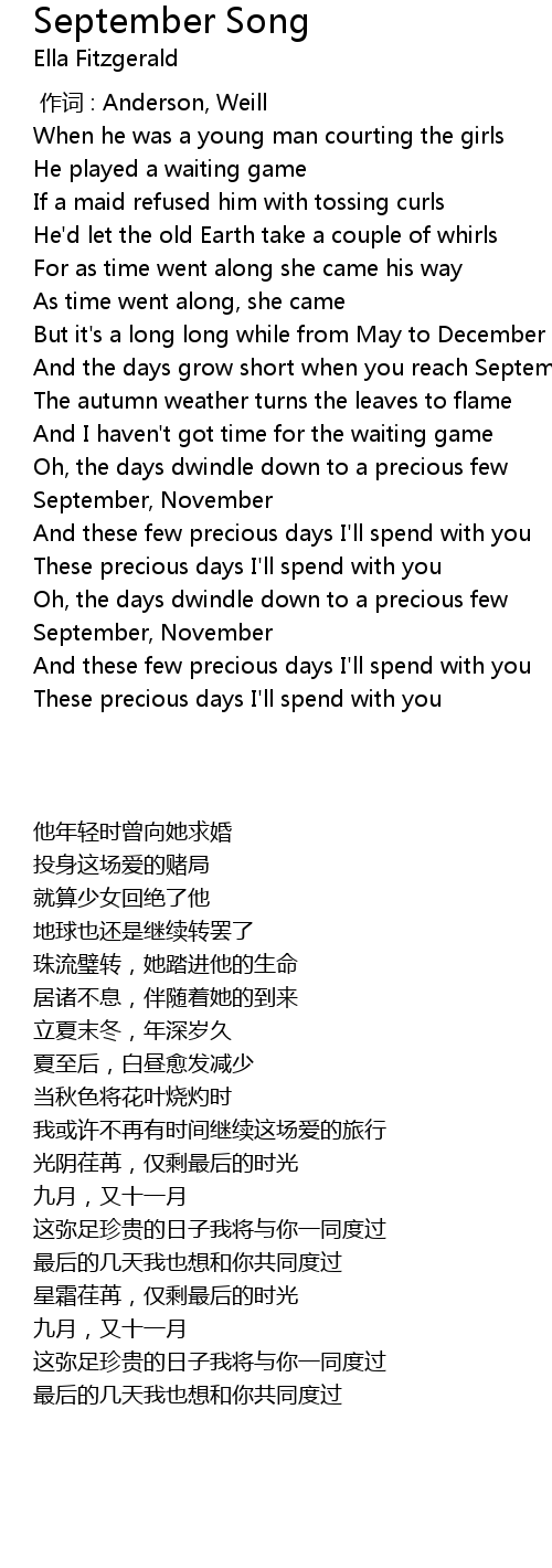 | [01:41.339] | Oh, the days dwindle down to a precious few |