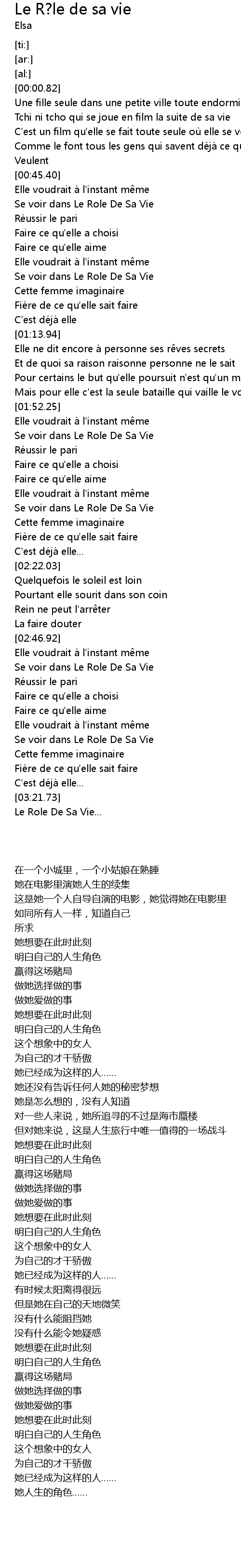| [01:56.46] | Se voir dans Le Role De Sa Vie |