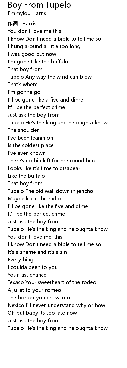 | Song | Boy From Tupelo |