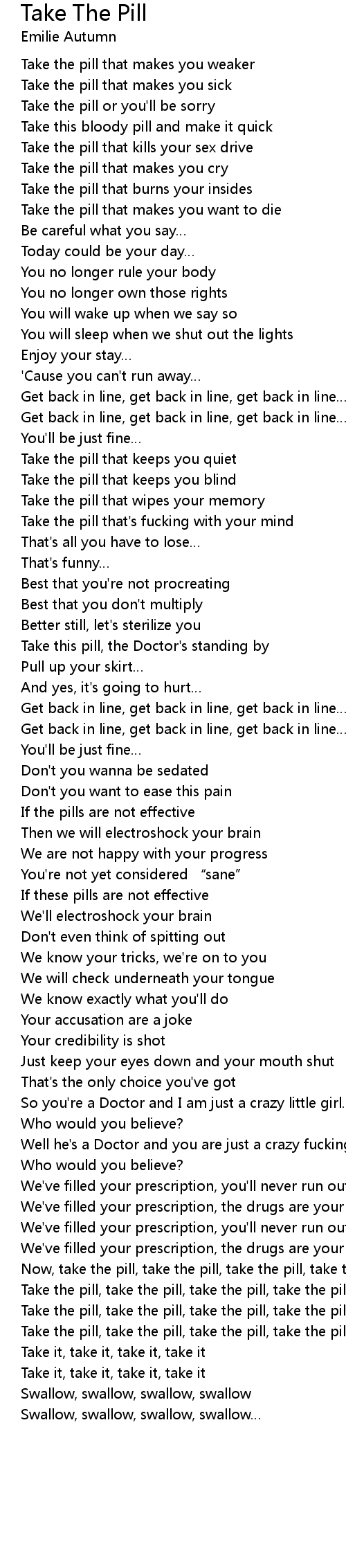 | Now, take the pill, take the pill, take the pill, take the pill | |
