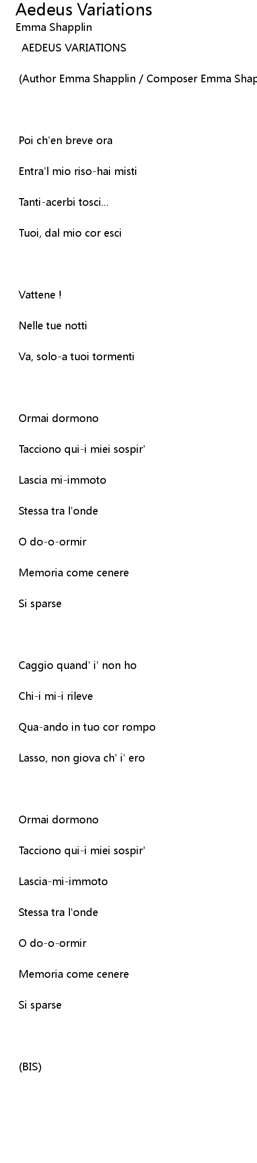 (Author Emma Shapplin / Composer Emma Shapplin) |