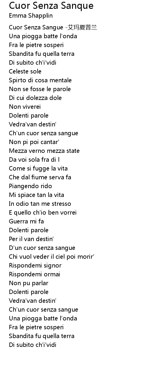 | [01:29.58] | Ch'un cuor senza sangue |