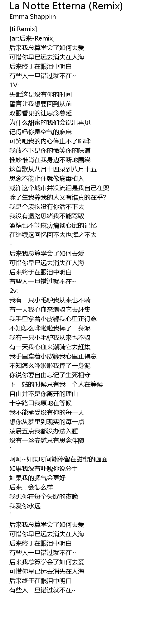 | [02:49.568] | 后来我总算学会了如何去爱 |