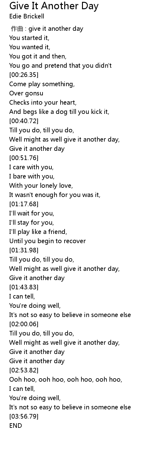 | [00:48.93] | Give it another day |