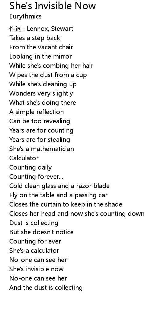 | Song | She's Invisible Now |