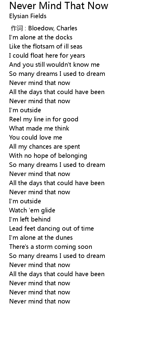 | Song | Never Mind That Now |