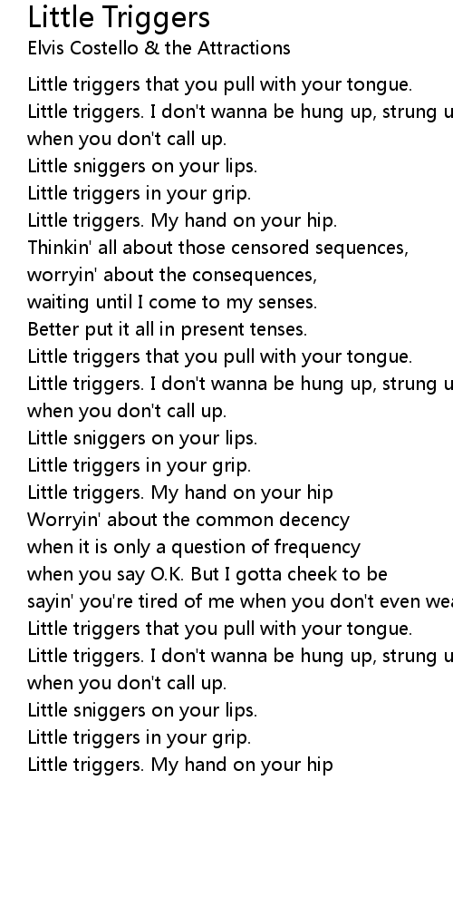 Little triggers. I don't wanna be hung up, strung up, |