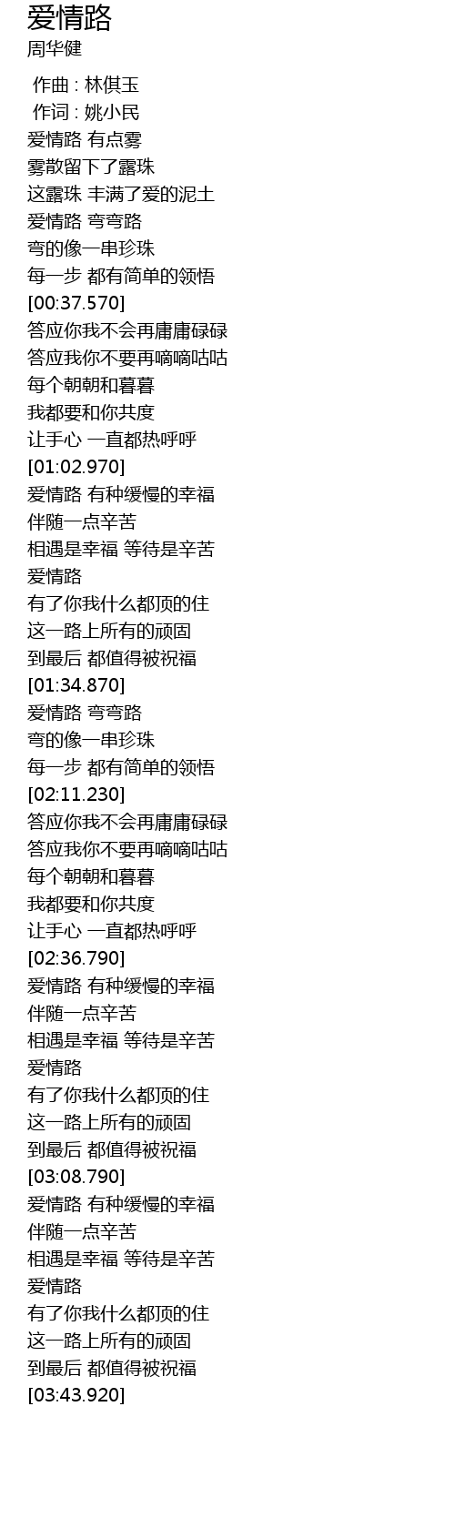 | [02:00.110] | 爱情路 弯弯路 |