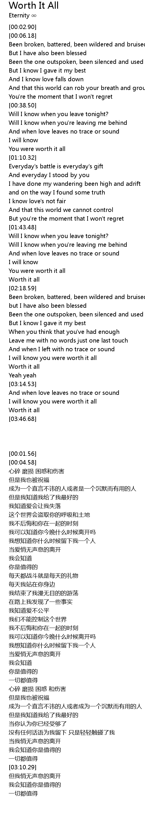 I will know you were worth it all |