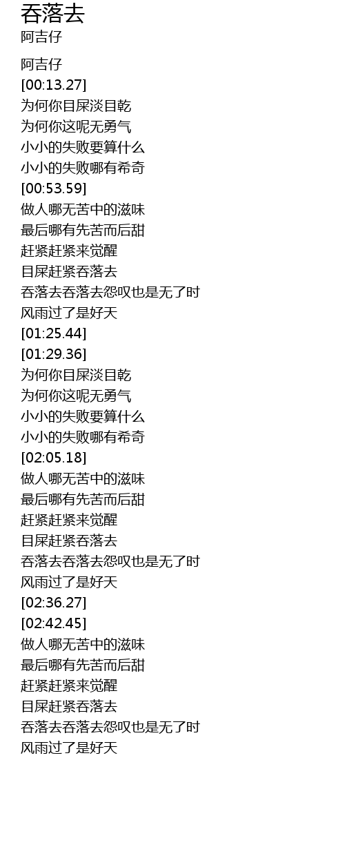 | [02:20.02] | 目屎赶紧吞落去 |