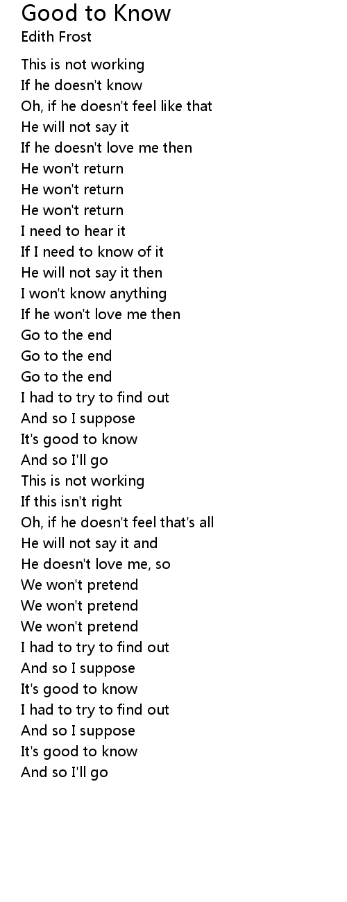 It's good to know |
