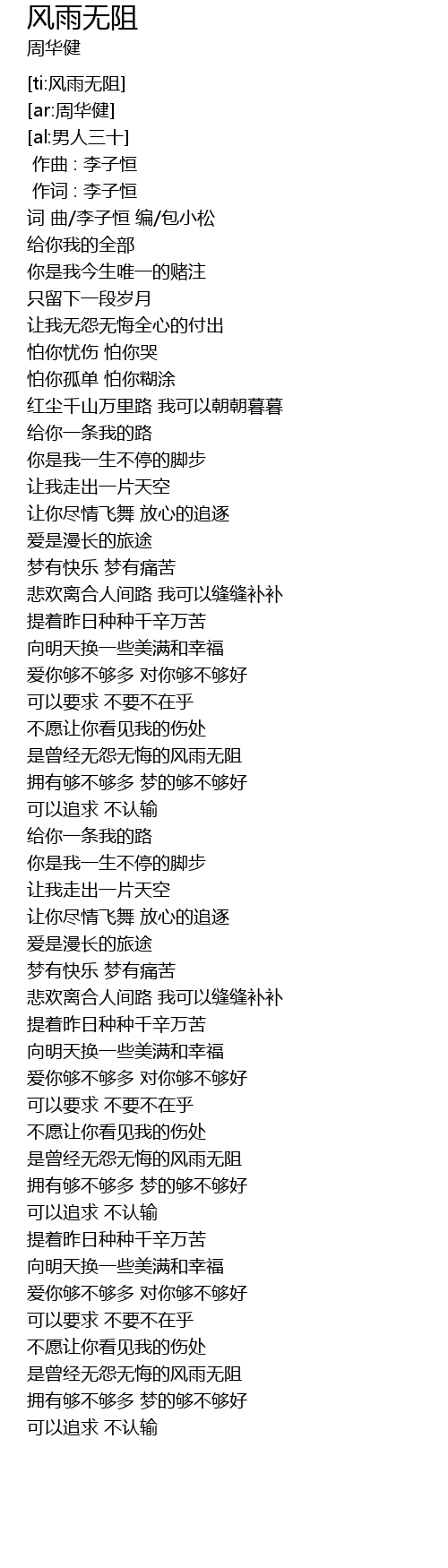| [ti:风雨无阻] | |