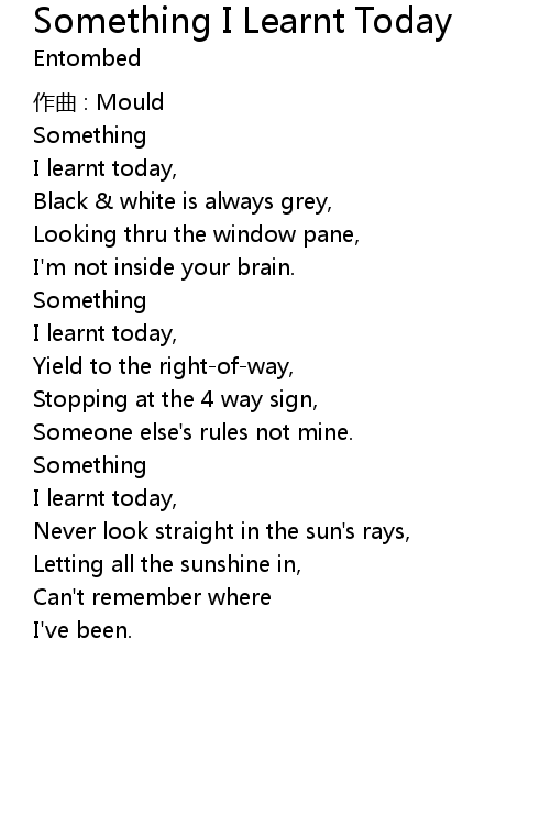 | Song | Something I Learnt Today |