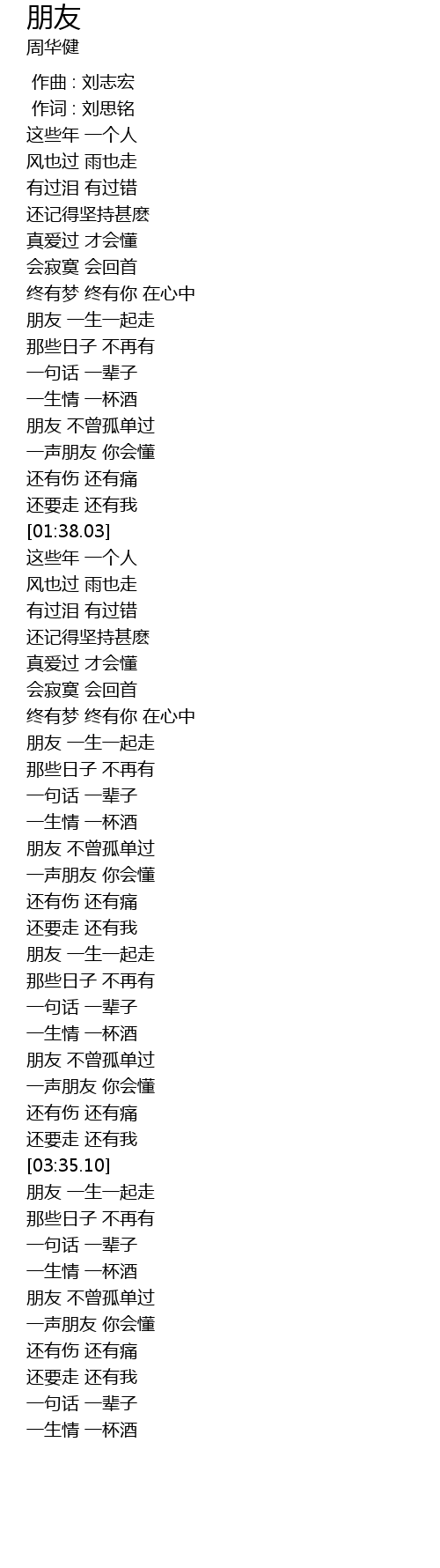 | [03:36.46] | peng you yi sheng yi qi zou |