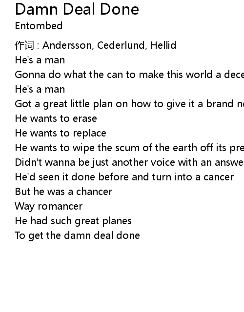 | Song | Damn Deal Done |