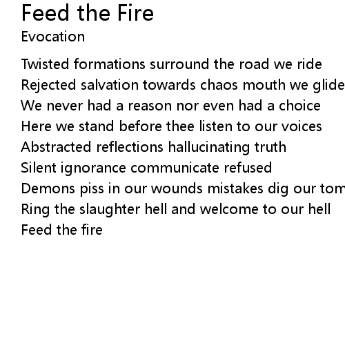 | Song | Feed the Fire |