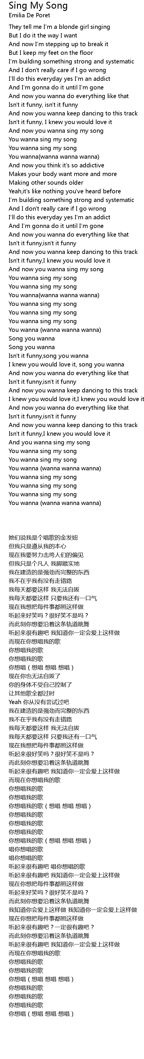 You wanna sing my song |