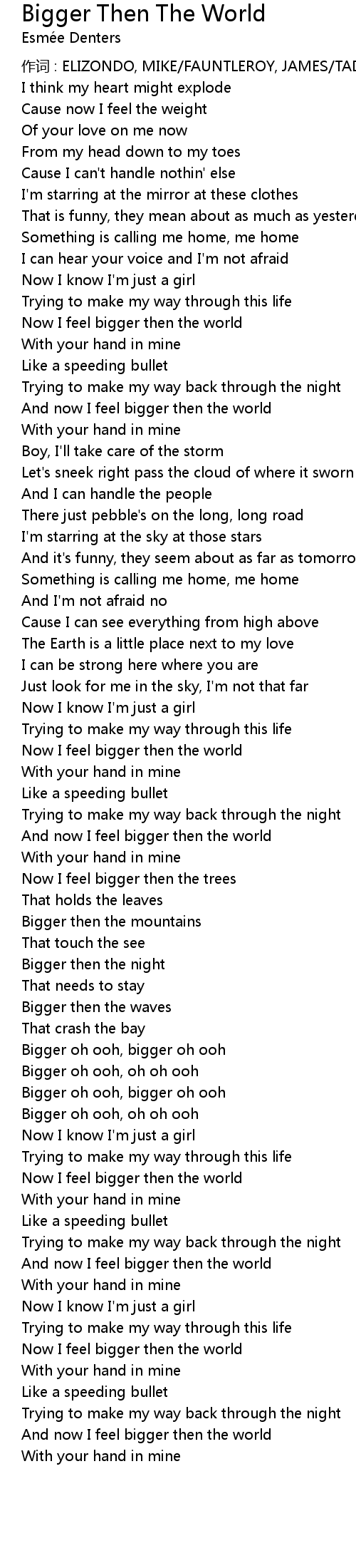 | And now I feel bigger then the world | |