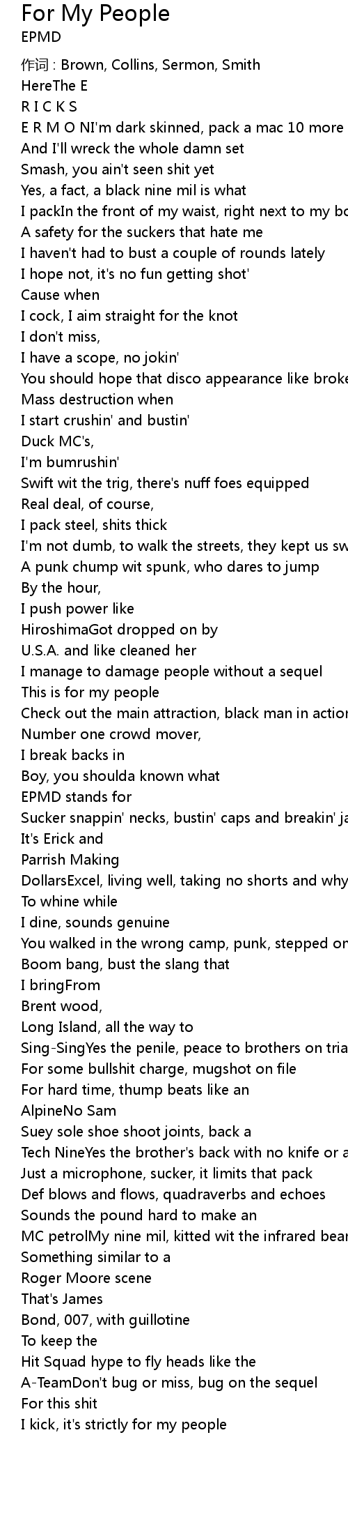 | E R M O NI' m dark skinned, pack a mac 10 more menace | |