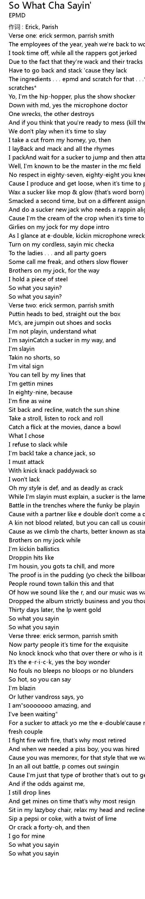 | The ingredients . . . epmd and scratch for that . . .*dj scratch cuts and scratches* | |